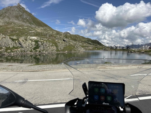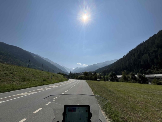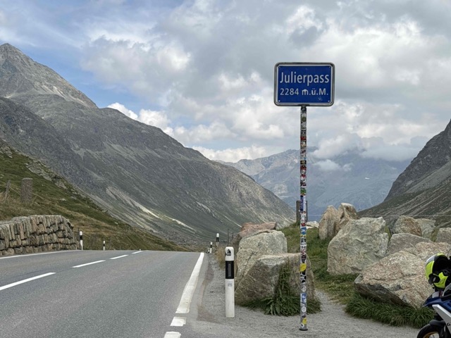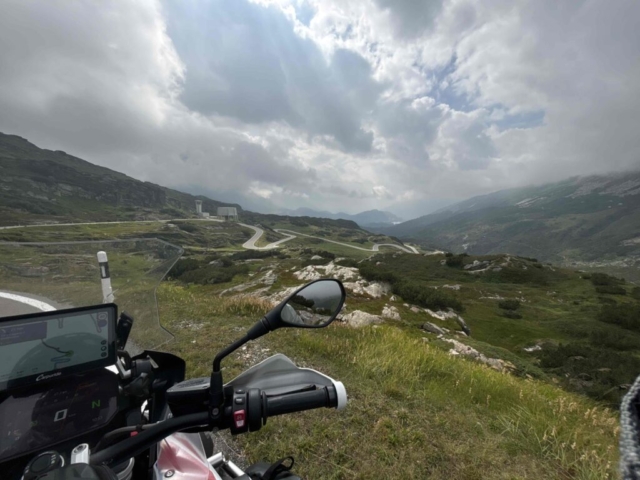 De Maloja pas was min of meer enkel een afdaling. En daarbij begon het ook nog te miezeren. Geen ramp maar niet prettig rijden en net genoeg om toch enigszins nat te worden.