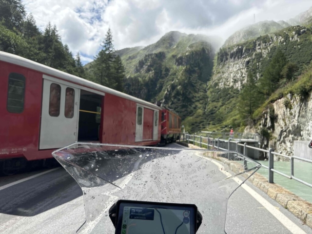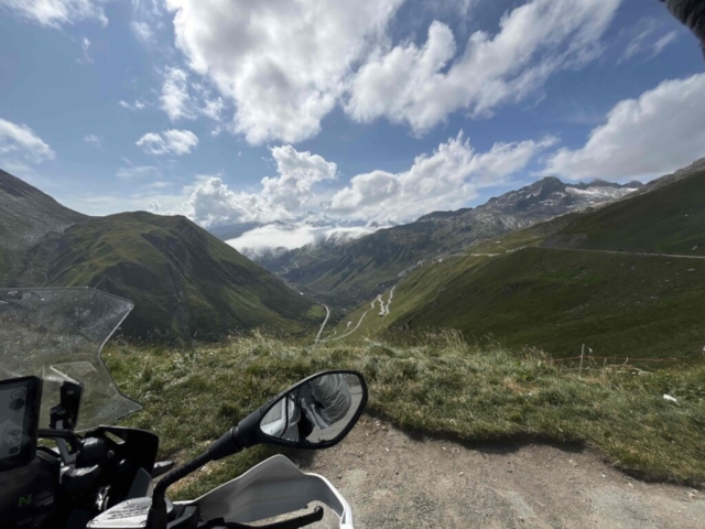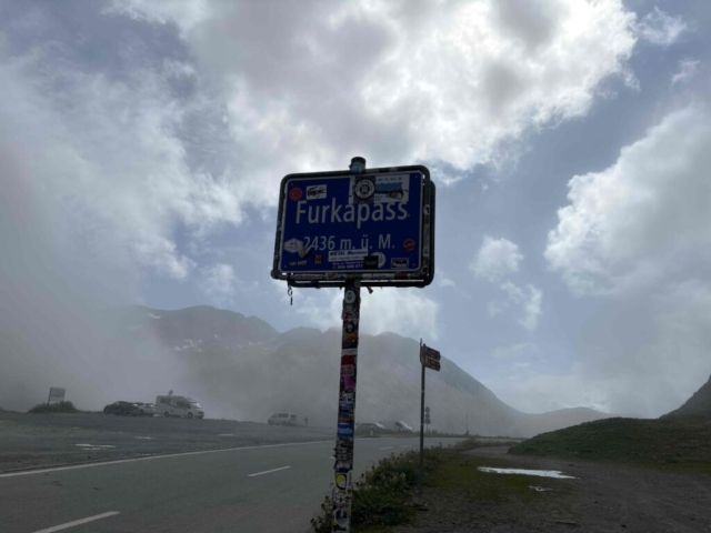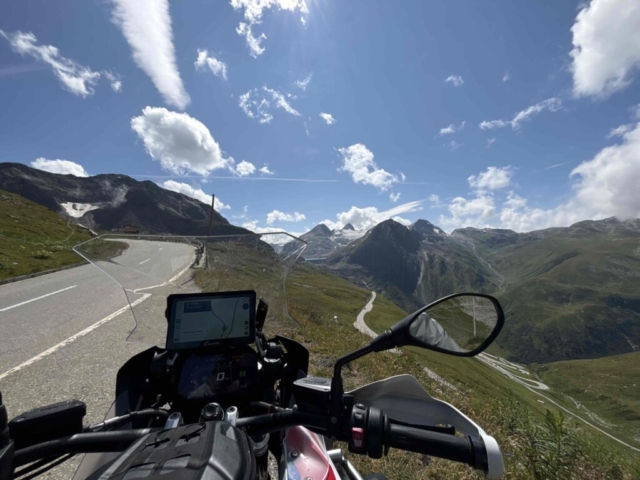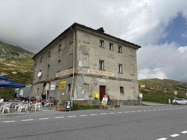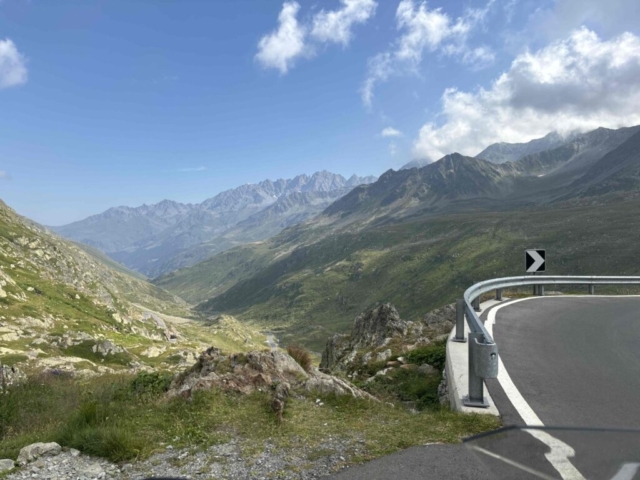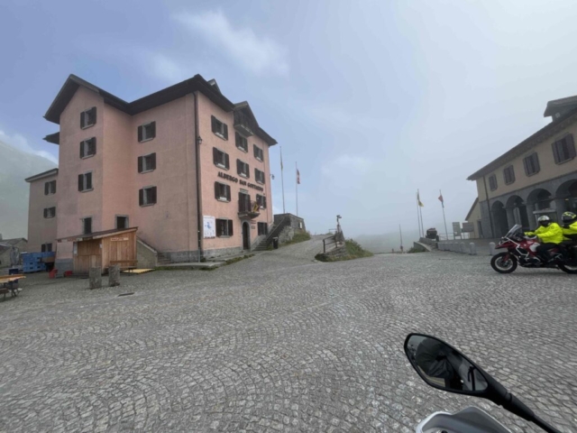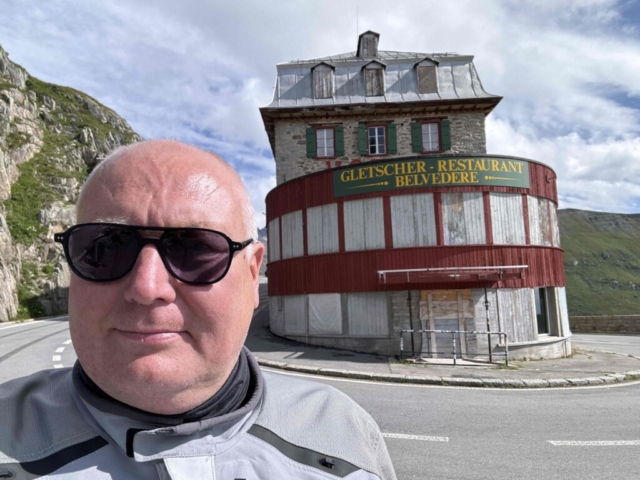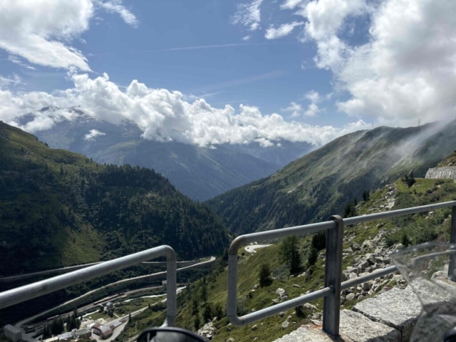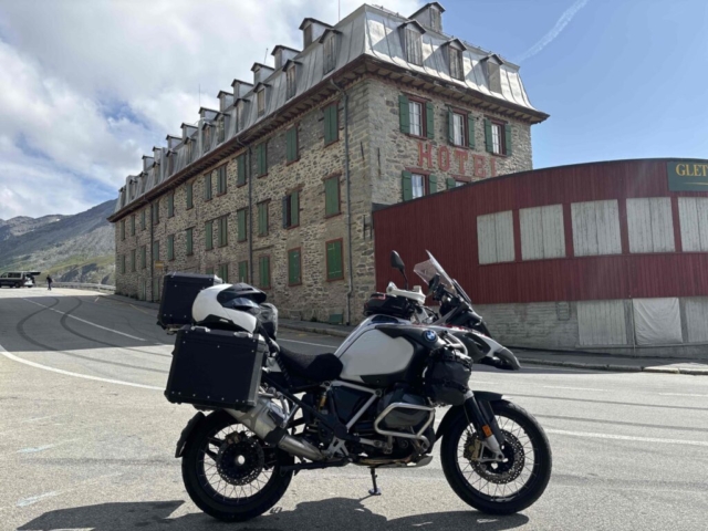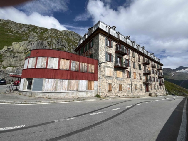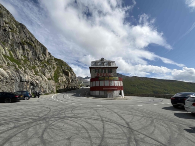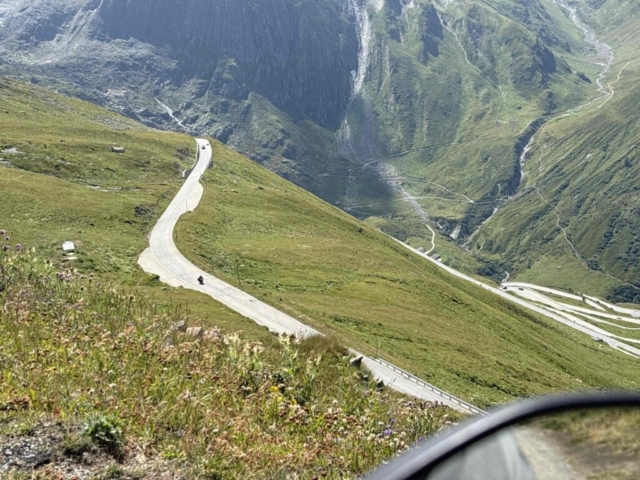 We besloten om toch bij ons hotel te stoppen, voor de lunch. Bijkomend voordeel was dat we alvast konden inchecken. Maar omdat de weergoden ons goed gezind waren besloten we het passenrondje Nufenen-, Tremola- en Furkapas vandaag te rijden. Prachtige passen waarbij vooral de Tremola (dit is de oude/eerst Gotthardpas, gemaakt van kinderkopjes) indruk op ons maakte. De Furkapas wordt vooral gekenmerkt door het leegstaande doch nog immer iconisch Belvedere Hotel, waar de weg zich letterlijk omheen slingert.