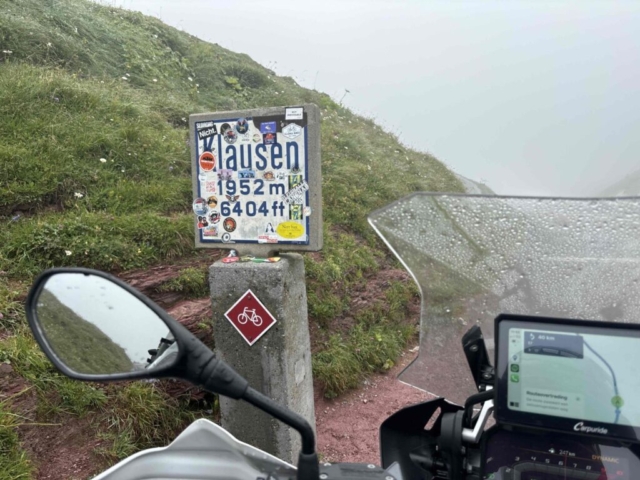 We vervolgden onze weg naar de laatste grote pas van onze Ronde van Zwitserland, de Klausenpas. Deze ligt een beetje “uit de richting” maar met ons doel van vandaag (Schwarzwald) was deze prima te combineren. Helaas was ook deze pas in nevel en bewolking gehuld en daarnaast bleek het wegdek niet van de kwaliteit te zijn als we de rest van onze reis gewend waren.