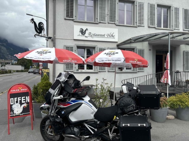 Een bijzondere en memorabele dag werd ’s avonds afgesloten met een typische Zwitserse kaasfondue en enige biertjes. En terwijl de motoren veilig stonden opgeborgen in de garage zochten ook wij moe maar tevreden onze bedjes op.