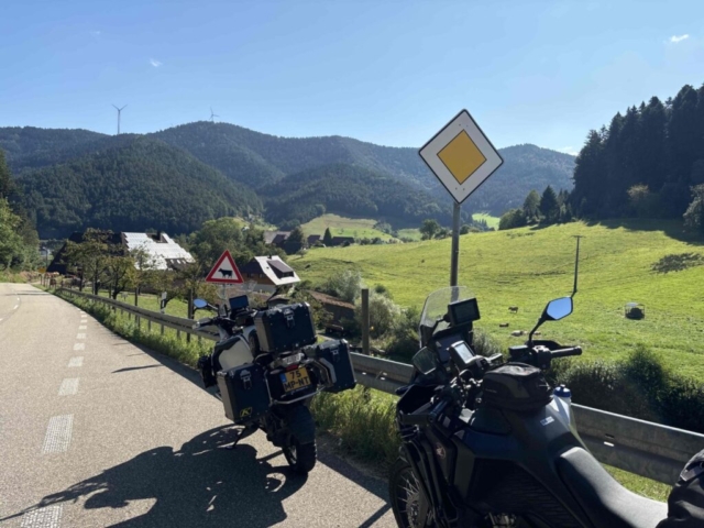 Voor vandaag lag een uitgebreid scenario klaar; zonder concessies te doen aan de vooraf bepaalde routes (lees: over mooie wegen door het Schwarzwald en Pfalz) wilden we kijken “hoe ver we komen”. Vierl het tegen dan was er een mogelijkheid om in Landstuhl te overnachten. En viel het niet tegen zouden we doorrijden tot Haus Hubertus in Winterspelt, daar een lange rustpauze met avondeten nemen, om vervolgens in 1,5 uur naar huis te rijden.