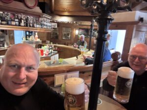 Hans volgde probleemloos, en toen we na het parkeren van de motoren in de naastgelegen Bier- ons Weinstube van eerstgenoemde vocht genoten, waren we het roerend eens dat vandaag een heerlijke dag was met prachtige wegen.
